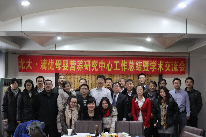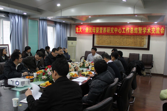 2012年12月19日,第一届北大·澳优母婴营养研究中心年度总结暨学术交流会在yl6809永利官网医学部yl6809永利官网召开。中心主任、首席医学营养专家李勇教授为代表的北大博士团代表,以及以澳优乳业集团副总裁刘跃辉、屈治劭为代表的澳优集团代表参加了会议。会议对2012年工作进行了全面总结并确定了2013年的工作计划,并为在研究生中评选出的“营养未来之星”奖学金获得者颁发奖状和奖金。