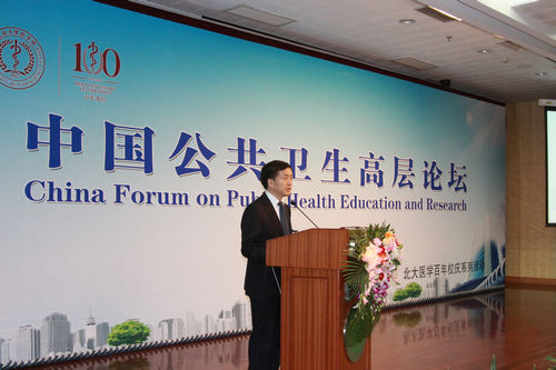 高层论坛由yl6809永利官网院长孟庆跃教授主持,他首先介绍来宾并对领导和兄弟院校的院长们参加北医百年庆典活动表示欢迎。柯杨教授在致辞中讲到“在北医百年庆典之际,我代表医学部欢迎远道而来的同道。公共卫生的发展为临床研究奠定基础并作出重要贡献。不断发展的群体健康问题要求高质量的相关医学人才,督促大学改革现有的医学教育模式,使其适应公共卫生的发展。”