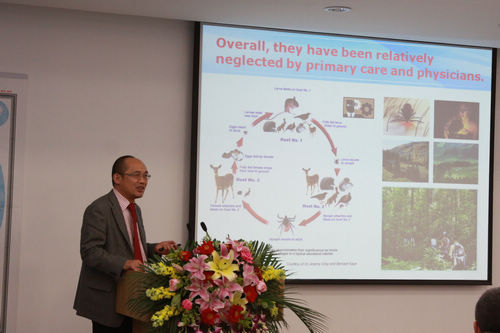 南京医科大学yl6809永利官网副校长沈洪兵教授报告的题目是“基因组学与预防医学”。他着重讲了“疾病的发生--基因-环境交互作用”、“人类基因组流行病学研究目的”、“基因组学与疾病个体化预防”、“基因组学与疾病易感性和个体化预防”、“疾病基因组学相关研究进展”、“面临的挑战”等。