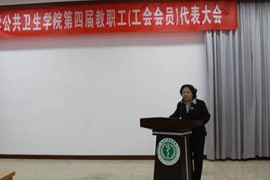 之后,医学部党委副书记顾芸老师发表讲话。她指出,公卫学院一年一度的教职工代表大会已成为学院职工的政治生活中的一件大事,体现了学院凝心聚力、构建和谐、共同发展的主旨。讲话中充分肯定了学院各项工作在过去一年中取得的成绩,同时从“加强学习,不断提升教代会工会工作水平;全面履行各项职能,构建和谐、推动发展;围绕中心、服务大局,真抓实干,在实施学院“十二五”规划中为学校和国家的发展贡献力量”三个方面,对于公卫学院工会、教代会工作提出了新的要求和希望。讲话鼓舞了士气,振奋了人心。