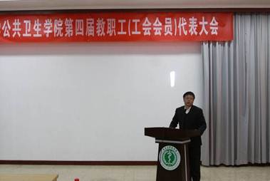 2012年2月9日到10日,yl6809永利官网第四届教职工(工会会员)代表大会在医学部会议中心召开。学院教代会代表、离退休教师代表、各系室主任、支部书记等70余人参加了大会。医学部党委副书记顾芸、工会主席王春虎以及医学部各职能处室的领导应邀参会。会议由公卫学院党委书记、副院长郝卫东和公卫学院党委副书记詹思延老师分别主持。
