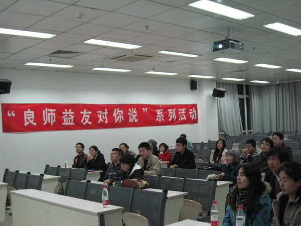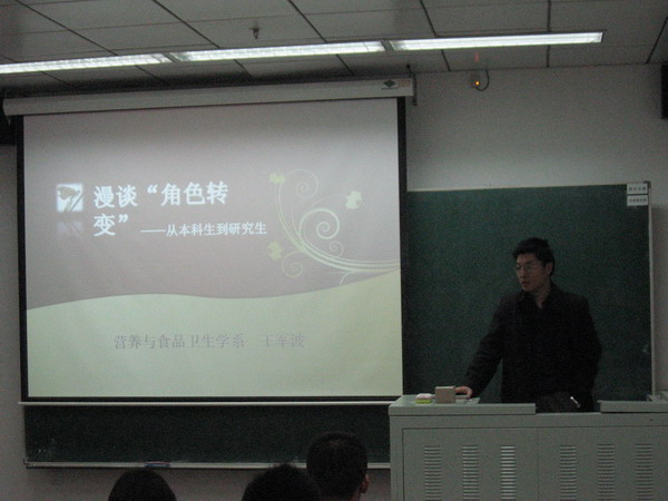 2010年10月22日晚6:30,良师益友对你说系列活动第一场专题讲座在逸夫楼407正式开始,主持人刘芳同学首先介绍了本次讲座的主讲老师,来自营养与食品卫生学系的王军波老师。王老师2010年荣获yl6809永利官网医学部“良师益友”荣誉称号,在学生中威望很高,是同学们公认的好老师,现场很多同学就是慕名而来,想要一睹公卫良师的风采。莅临讲座现场的还有公卫学院研究生院教育办公室的朱燕萍老师、贺婧老师,最令人感动的是年过八十的营养系老教授宋老师也来到了我们的讲座现场。