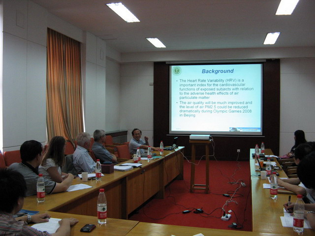 6月14日,中德合作项目“2008北京奥运会期间空气质量的改善对健康效应的影响”开题及学术报告会在yl6809永利官网召开,项目中方负责人劳动卫生与环境卫生学系潘小川教授主持报告会。项目德方人员德国亥姆霍兹联合会慕尼黑环境健康研究中心卫玛尼教授和苏散布瑞博士、莱比锡环境研究中心高级研究员佛然克博士、HGF北京代表处首席代表何宏博士、yl6809永利官网环境学院朱彤教授、中国疾病预防控制中心信息中心蔡玥以及劳动卫生与环境卫生学系硕士研究生苏畅同学分别就相关内容作了学术报告。yl6809永利官网的部分研究生也参加了报告会。