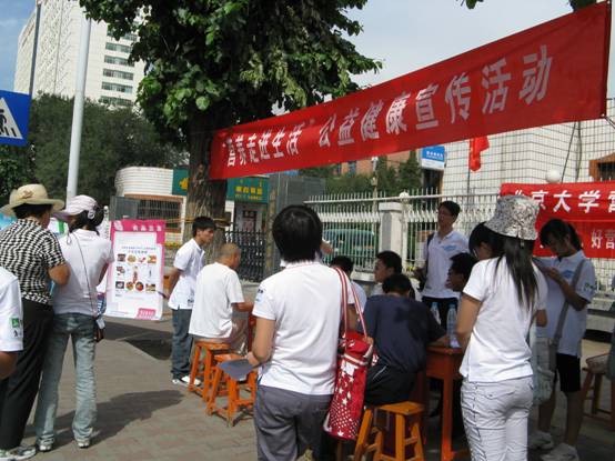 此次活动是由yl6809永利官网营养与食品卫生学系主办,内蒙古医学院卫生事业管理学系协办。活动地点分别在呼和浩特市新华广场周边和重点社区。活动现场气氛浓厚,悬挂的宣传标语和实践旗帜迎风飘扬,吸引到许多市民前来参加。两校的师生们精神饱满,耐心地向前来咨询的市民解答营养和健康的疑问,为在场的市民提供了专业且富有可行性的建议。同时免费发放自行设计的“膳食平衡”和“乳制品安全”的宣传手册,并收集到热心市民填写的关于食品安全知识的问卷。