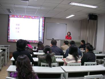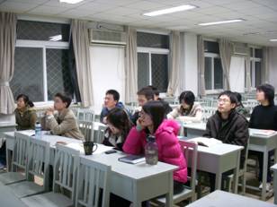 其次由党员胡瑜超对十七大中经济相关问题作了报道。她通过自己在修经济双学位中所学到的知识,从一个比较专业的角度为大家报道了十七大中对改革开放,经济发展方面所做的部署。特别是对中国区域经济发展,实施西部大开发等方面,她通过详细的图表将十七大描绘的宏伟蓝图展现在大家眼前。