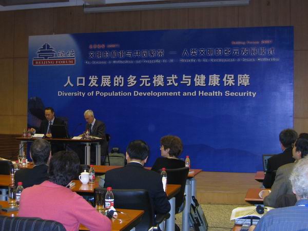 北京论坛(2007)11月2日-4日在北京隆重召开,今年的主题是文明的和谐与共同繁荣——人类文明的多元发展模式。由yl6809永利官网与人口所联合组织人口与公共卫生分论坛同时举办,主题是:人口发展的多元模式和健康保障。主要讨论在人口转变、健康转变和社会转型过程中的人口健康保障和公共政策问题,针对不同的人口发展态势和不同需求的重点人群提出关键问题和政策建议。