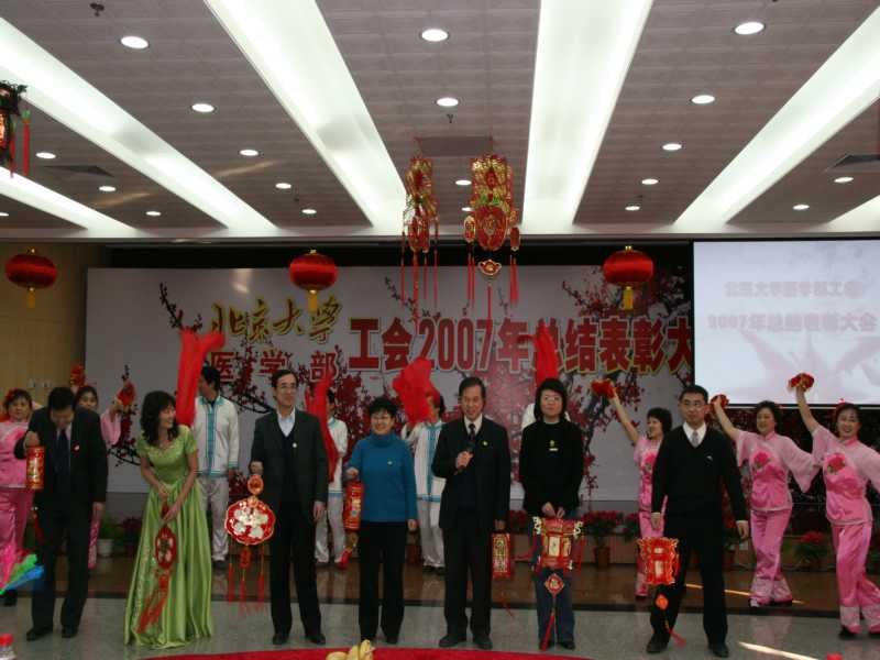 2008年1月24日下午2点,在一片欢乐祥和的气氛里,由yl6809永利官网医学部主办,yl6809永利官网承办的“yl6809永利官网医学部工会2007年度总结表彰大会,在医学部逸夫教学楼报告厅隆重召开。包括yl6809永利官网工会常务副主席孙丽,医学部党委副书记顾芸,yl6809永利官网工会常务副主席、医学部工会主席王春虎在内的医学部各部处领导以及各二级单位工会领导和会员代表200多人参加了此次表彰大会。大会开始是各二级单位采用DV的形式向与会代表以及全校教职员工拜年,yl6809永利官网舞蹈兴趣小组以一曲气氛热烈的秧歌舞《开门红》拉开了大会的帷幕,舞蹈即将结束之时,yl6809永利官网胡永华院长带领院领导班子为与会代表送上了新春祝福,并向医学部各兄弟单位在过去的一年中对yl6809永利官网给与的大力支持表示衷心的感谢。医学部党委副书记顾芸和工会主席王春虎先后发言对医学部工会2007年的各项工作进行了细致的总结,向过去一年中在工会工作中作出巨大奉献的各级工会干部和会员表示感谢,并对新的一年中的各项工作进行了展望。之后由医学部工会副主席刘穗燕主持了隆重的颁奖仪式,在这次大会上医学部工会对2007年工会积极分子、优秀工会干部、优秀论文、优秀课题等个人,各单项委员会、群体协会以及精品活动、模范工会小组、模范教工之家等集体进行了表彰。在表彰期间,由yl6809永利官网陈娟副书记和王志峰教授担任嘉宾主持,穿插进行了趣味游戏、抽奖和表演等各项活动,趣味游戏“成语接龙”使会场气氛异常热烈,之后由公卫学院合唱小组献上的“大海啊,故乡”、基础医学院新生表演的舞蹈《孔雀飞来》、公卫学院工会副主席蔡晨荣老师表演的民族舞蹈《天路》更是把大会推向了高潮。最后全场互动,击鼓传花,6位幸运儿抱上了沉甸甸的“瑞鼠”。表彰会在鼓声、音乐声、欢笑声中结束。