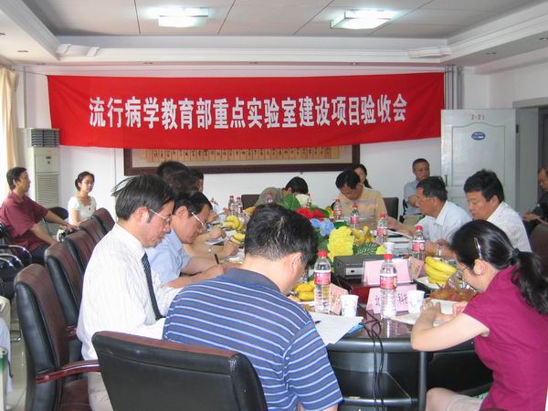 2007年6月15日教育部科技司组织专家在yl6809永利官网对“流行病学教育部重点实验室”建设项目进行验收。来自中国协和医科大学基础研究所沈岩院士、中国疾病控制中心流行病与传染病研究所所长徐建国教授、北京市卫生局副局长梁万年教授、中国军事医学科学院所长曹务春教授、首都医科大学公共学院院长王嵬教授、山东大学yl6809永利官网院长赵仲堂教授、安徽医科大学yl6809永利官网院长叶冬青教授组成的专家组进行验收工作,组长由沈岩院士担任。yl6809永利官网常务副校长柯杨教授、医学部副主任方伟岗教授、教育部科技司李渝红处长、医学部科研处沈如群处长、基础医学院周春燕副院长,yl6809永利官网科研部及医学部学科建设办公室领导、yl6809永利官网各系主任参加验收会。
