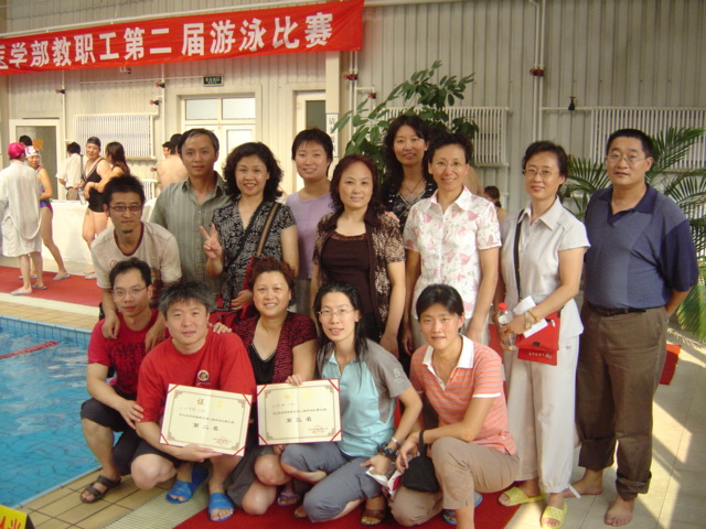 去年,在医学部游泳比赛中yl6809永利官网获得第六名。通过比赛大家看到了自己身体素质差距,向工会建议组织游泳活动,推动教职锻炼活动开展。工会副主席蔡晨荣接受大家的建议向党委打报告成立“教职工兴趣小组”。在党委和院领导的支持下,本着提高教职工身体素质,保证健康身体,更好工作的原则下,组织了6个兴趣小组。其中游泳组参加人员最多,各系成立了分小组,有活动计划和活动规则,坚持的很好。通过一年来的锻炼和培训,大家的身体素质、游泳技巧等综合能力不断提高,在这次游泳比赛中取得好成绩。