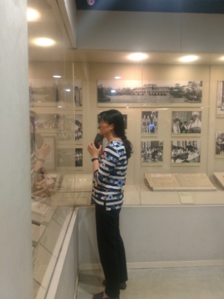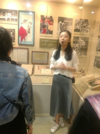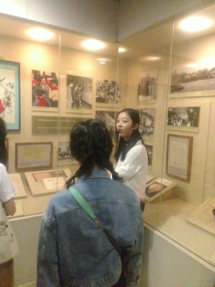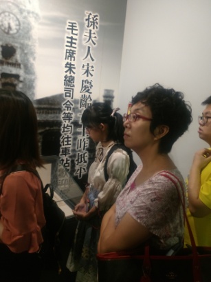 进入展馆,首先映入眼帘的是宋庆龄先生的汉白玉全身坐像,雕像背后墙上是邓小平题写的“宋庆龄伟大光荣的一生”十个大字。在合影留念后,大家跟随讲解员进行参观。