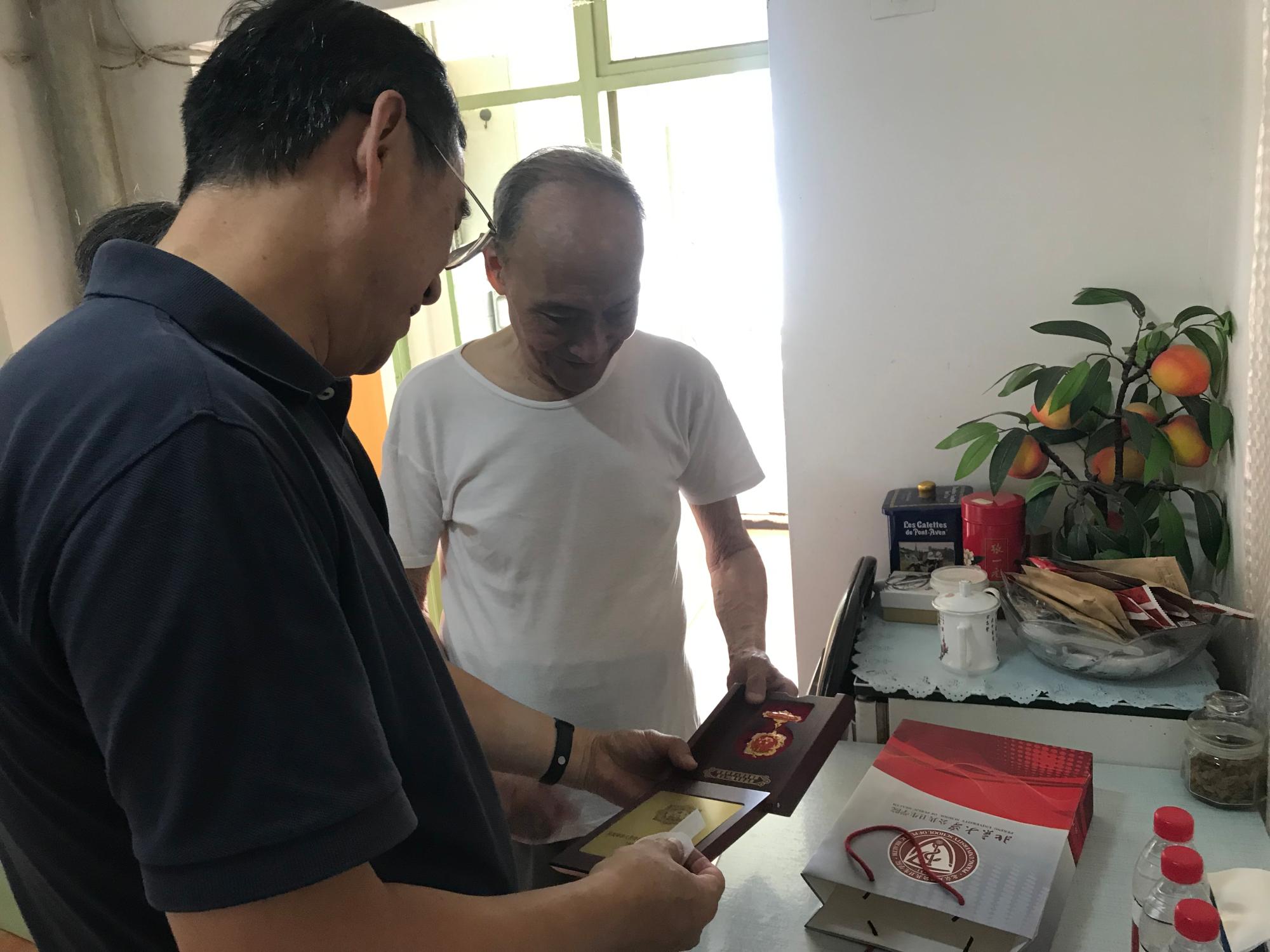 国庆节前夕,yl6809永利官网党委组织我院领导老师,带着慰问品逐一慰问看望我院离休干部,同时将国家颁发的“庆祝中华人民共和国成立70周年”纪念章于9月26前均发送到离休干部手中。
