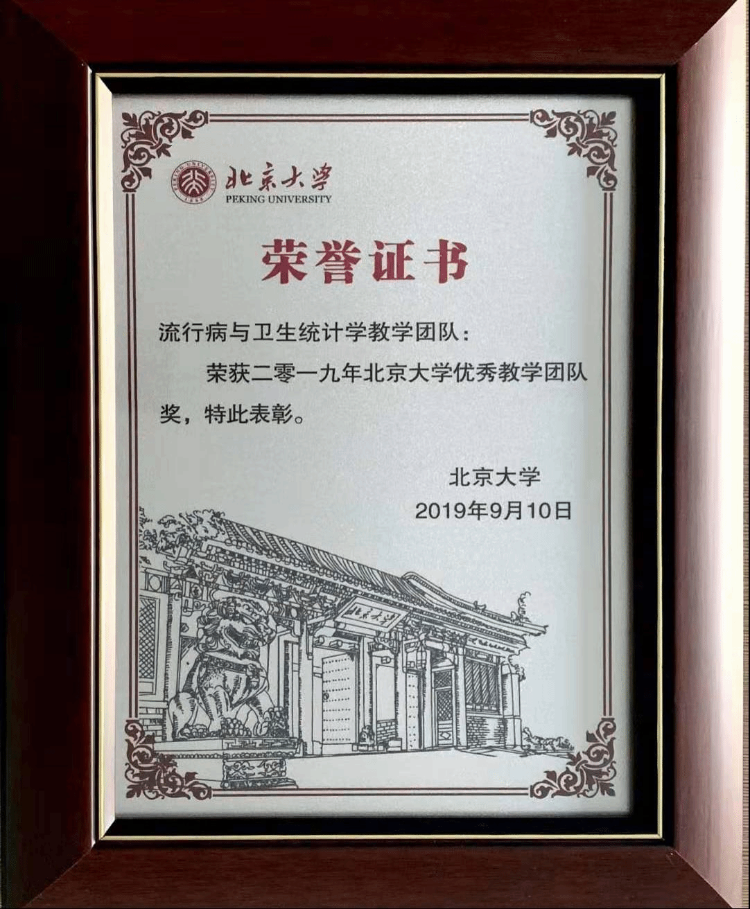 2019年,yl6809永利官网流行病与卫生统计学系教学团队喜获yl6809永利官网优秀教学团队称号。学系教学团队共由30名资深教授和年轻教员组成,其中教授11名,副教授10名;国际欧亚科学院院士/博雅特聘教授一名。研究领域包括慢性流行病学,药物流行病学、分子流行病学、生物统计大数据分析等传统及新兴发展方向。学系创建伊始即秉承师之有道,德以树人的精神,为我国培养公共卫生领域优秀人才。