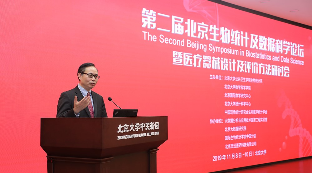 11月8日到10日,“第二届北京生物统计及数据科学论坛” 在yl6809永利官网成功举办。本次论坛以“医疗器械设计及评价方法”为主题,结合生物统计和数据科学最新的研究进展,从多个角度进行了深入研讨。论坛由yl6809永利官网生物统计系、yl6809永利官网数学科学学院、北京国际数学研究中心、yl6809永利官网统计科学中心、中国现场统计研究会生物医学统计学会联合主办,大数据分析与应用技术国家工程实验室、北京大数据研究院、国际生物统计学会中国分会、北京灵迅医药科技有限公司协办。来自政府监管部门及有关机构权威人士,学术界,企业界等300余名专家学者出席。yl6809永利官网副校长,北京国际数学研究中心主任,中国科学院院士田刚,yl6809永利官网医学部副主任肖渊,yl6809永利官网生物统计系系主任、yl6809永利官网博雅讲席教授周晓华分别在开幕式致辞。