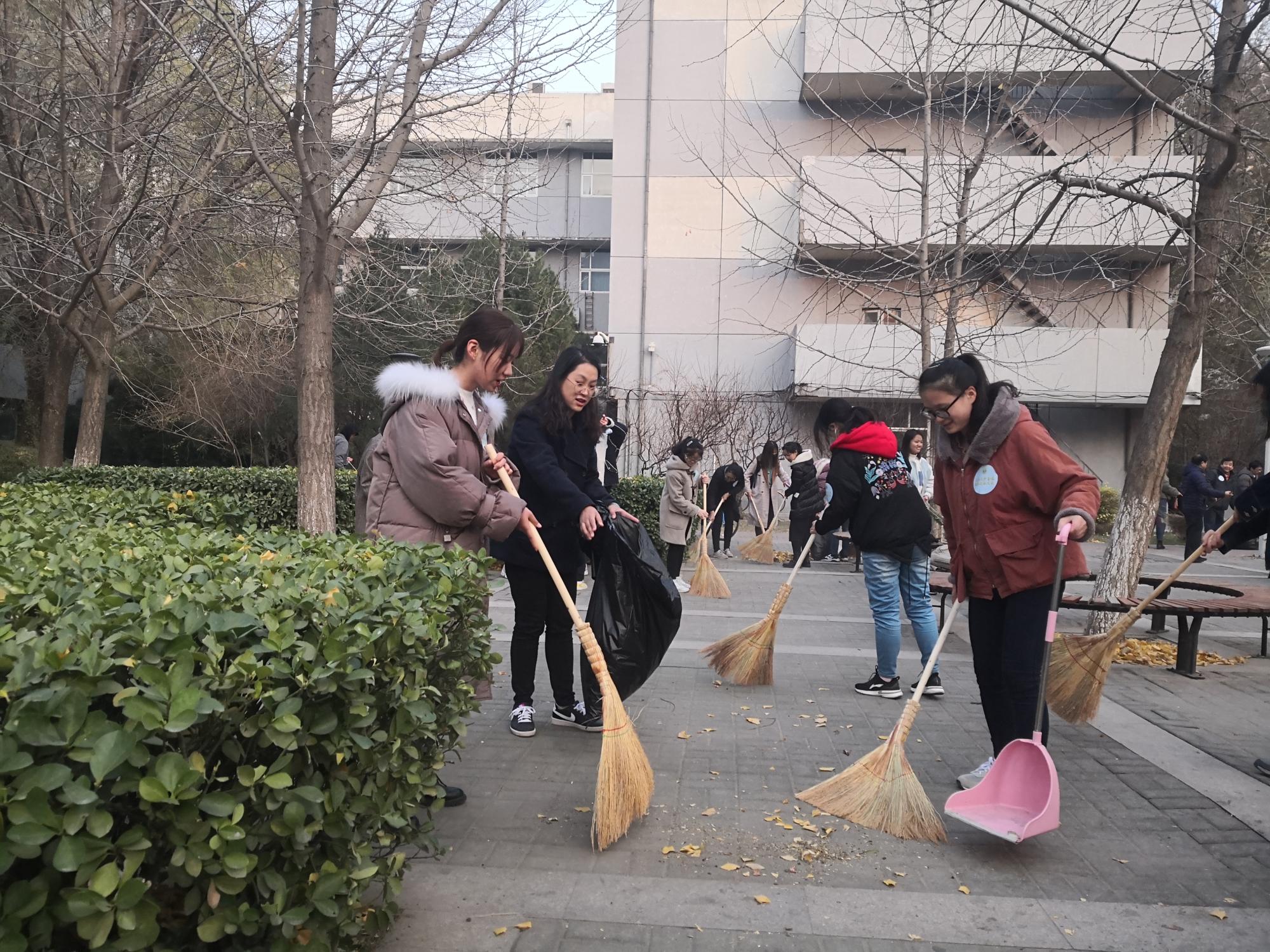 2019年11月21日,秋末冬初的北京略有一丝寒意。下午15:30分,一群热情洋溢的北大公卫青年人从校园的四面八方汇聚到中心花园。学院党委副书记张景怡,预防医学2018级的同学们与学办主任段瑞阳、总务处和基建处的老师们一起清扫中心花园的卫生并收集落叶。