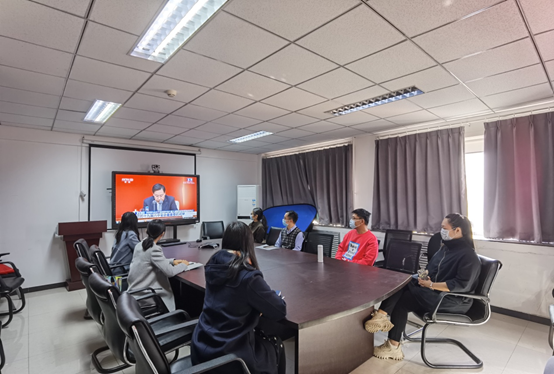 当日一早,新公卫楼各会议室、办公室里人头攒动、气氛热烈,各教工和学生支部在严格遵守疫情防控期间会议规定的前提下,热火朝天地开展着收看十九届六中全会精神发布会的筹备工作。等发布会一开始,会场则立时呈现一派静静观看听讲的景象。