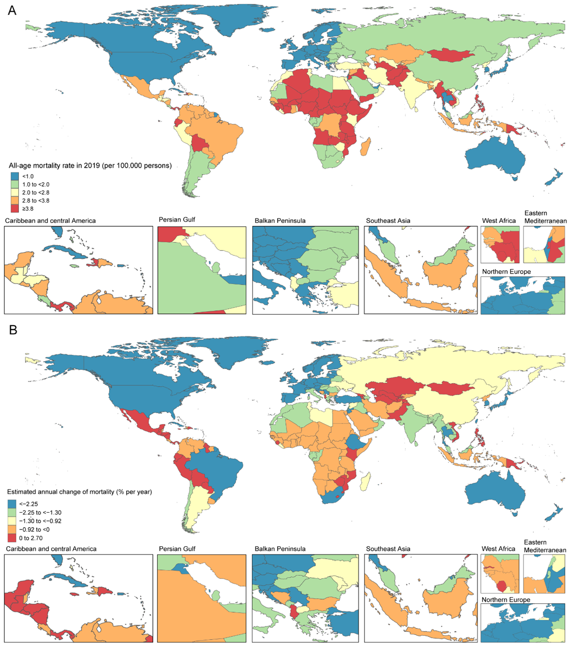 总体而言,世界各国正面临着先心病负担持续增长的巨大挑战,只有在国家层面建立覆盖全生命周期的先心病医疗体系并保持充足的财政投入,才能促使先心病的死亡率持续下降,从而进一步提高人口素质。