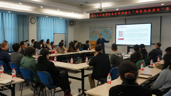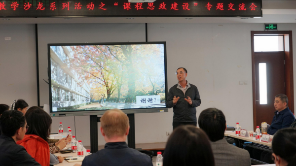 徐书记首先从“为什么要强调课程思政”出发,以革命和教育的首要问题为引,强调了教师的初心和根本任务应当落实立德树人,肩负起为党育人、为国育才的历史使命,让在座的老师们切实领会到思政教育的重要性。徐书记进一步阐述了对于思政建设的独到见解,课程上的思政教育应当拥有思想的魅力、理论的支撑和灵魂的升华。“你给予学生的教育方式,就是你对于生命的理解体现。”徐书记谈到思政教育与专业课程的“融合”,不是贴标签式的生搬硬套,是建立在教师自身政治修养基础上的言传身教与先进思想交流的融会贯通、心与心的沟通。