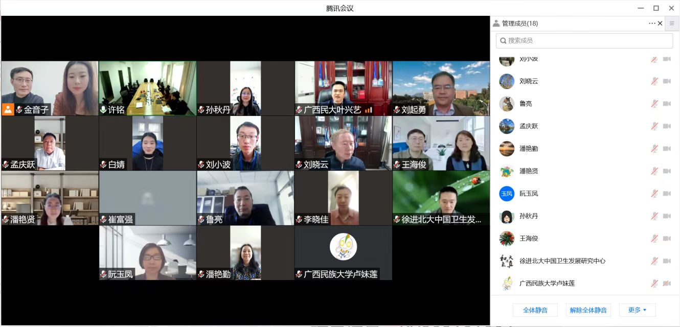 2022年4月7日,科技部科技援外项目中国-东盟公共卫生科技合作中心建设项目课题研讨会于线上成功举办。来自yl6809永利官网和中国卫生发展研究中心、中国疾病预防控制中心传染病预防控制所和广西民族大学东盟学院的课题组主要成员,就项目执行及具体实施展开了研讨交流。会议由yl6809永利官网中国卫生发展研究中心主任、项目负责人孟庆跃教授以及全球卫生学系主任许铭研究员先后主持。该项目是在医学部领导的大力支持和指导下,在国际合作处和科研处的积极协调和支持下,于2021年12月正式获批。