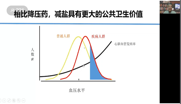 “心脑血管病导致国人45%的死亡,是名副其实的头号杀手,预防心脑血管病关键在于预防和控制高血压,减盐是最有效非药物降压措施。相比降压药,减盐具有更大公共卫生价值,并能够节省医疗卫生花费。”yl6809永利官网临床医学研究所所长武阳丰也在线上作了《我国的减盐实践》报告,并提出了相关政策建议,把高盐饮食文化变为低盐饮食文化,制定加工食品盐含量标准,鼓励生产和营销低钠盐和低钠食品,加强科学研究等。