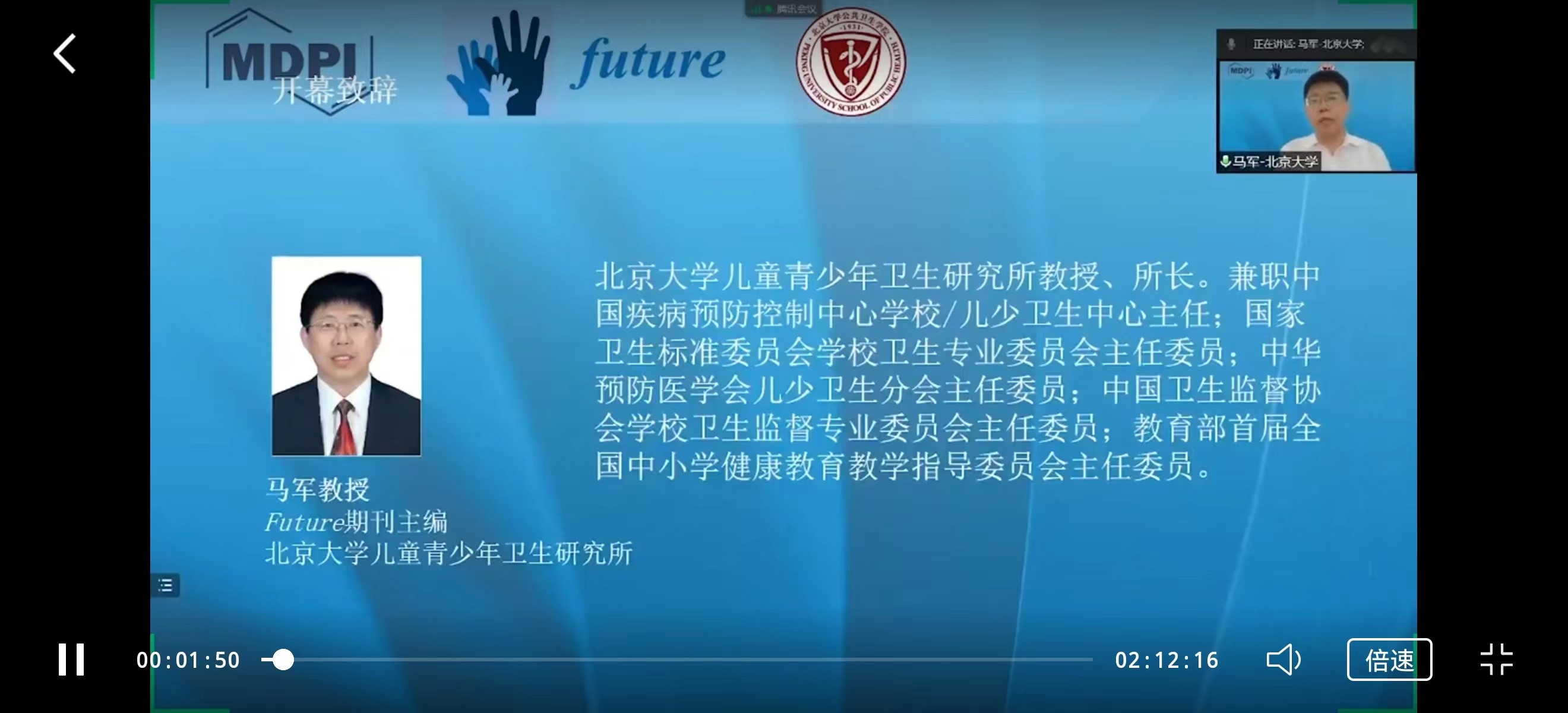 “中国儿童青少年热点问题论坛暨Future新刊发布会”特邀Future期刊主编马军教授作为论坛主席,汇聚国内外专家为会议主讲人,并邀请到联合国儿童基金会驻华办事处共同参与。yl6809永利官网儿童青少年卫生研究所马军教授、MDPI亚太区学术关系总监刘国水博士代表双方致辞,yl6809永利官网院长詹思延教授,MDPI执行总裁Delia Mihaila女士,联合国儿童基金会驻华办事处黄晓娜女士,香港浸会大学体育运动及健康学系Patrick W.C. Lau刘永松教授,联合国艾滋病规划署周凯女士发表视频致辞,向Future的创立表示祝贺。