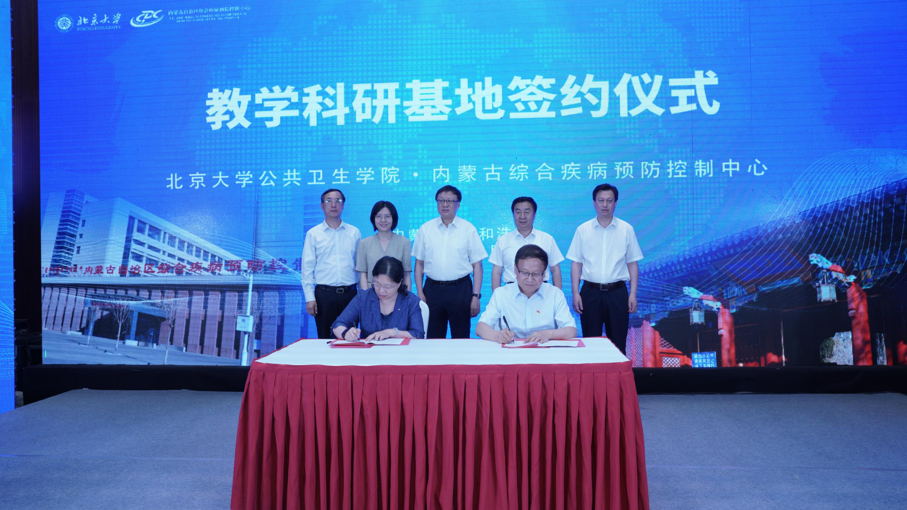 在欧阳晓晖副主席、张莉鑫书记等领导的见证下,由yl6809永利官网詹思延院长和内蒙古综合疾控中心主任王文瑞为代表签署了《yl6809永利官网医学部 内蒙古自治区综合疾病预防控制中心教学科研交流合作协议》。欧阳晓晖副主席、张莉鑫书记等领导共同为《北京大学yl6809永利官网教学科研基地》揭牌。