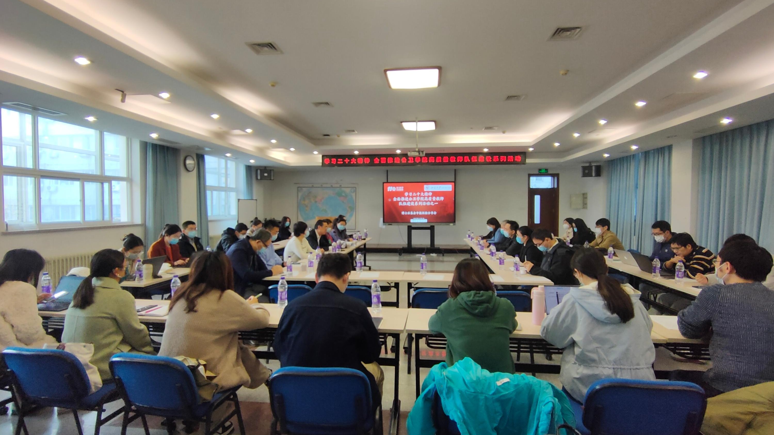 首先,学院党委书记郝卫东教授领学二十大精神,重点从党的二十大的重大历史意义,中国式现代化的特点及本质要求,实施科教兴国战略,强化现代化建设人才支撑等方面方面进行了全面阐释和深入解读。