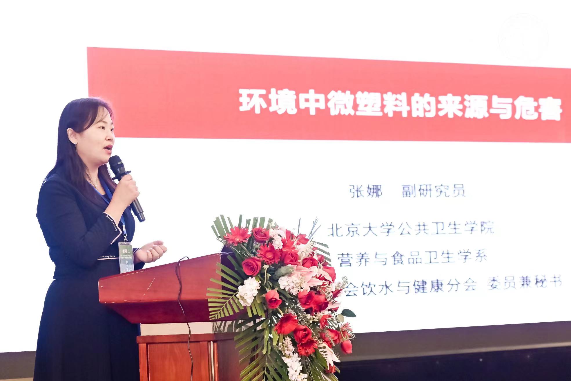 我院张娜副研究员在“水资源、水质与健康”环节着重介绍了水中微塑料的人群暴露途径及其潜在健康危害。据国内外近年研究报告,塑料及粒径<5mm的微塑料已成为水体等环境的重要污染源,通过饮食、日用品及大气等途径进入机体,在人体内的呼吸道、消化道等组织器官中均有检出,而经饮水途径摄入的微塑料占微塑料总暴露的3.3%-42.7%,有必要重视其存在,并积极开展探索其人群健康效应的后续研究。