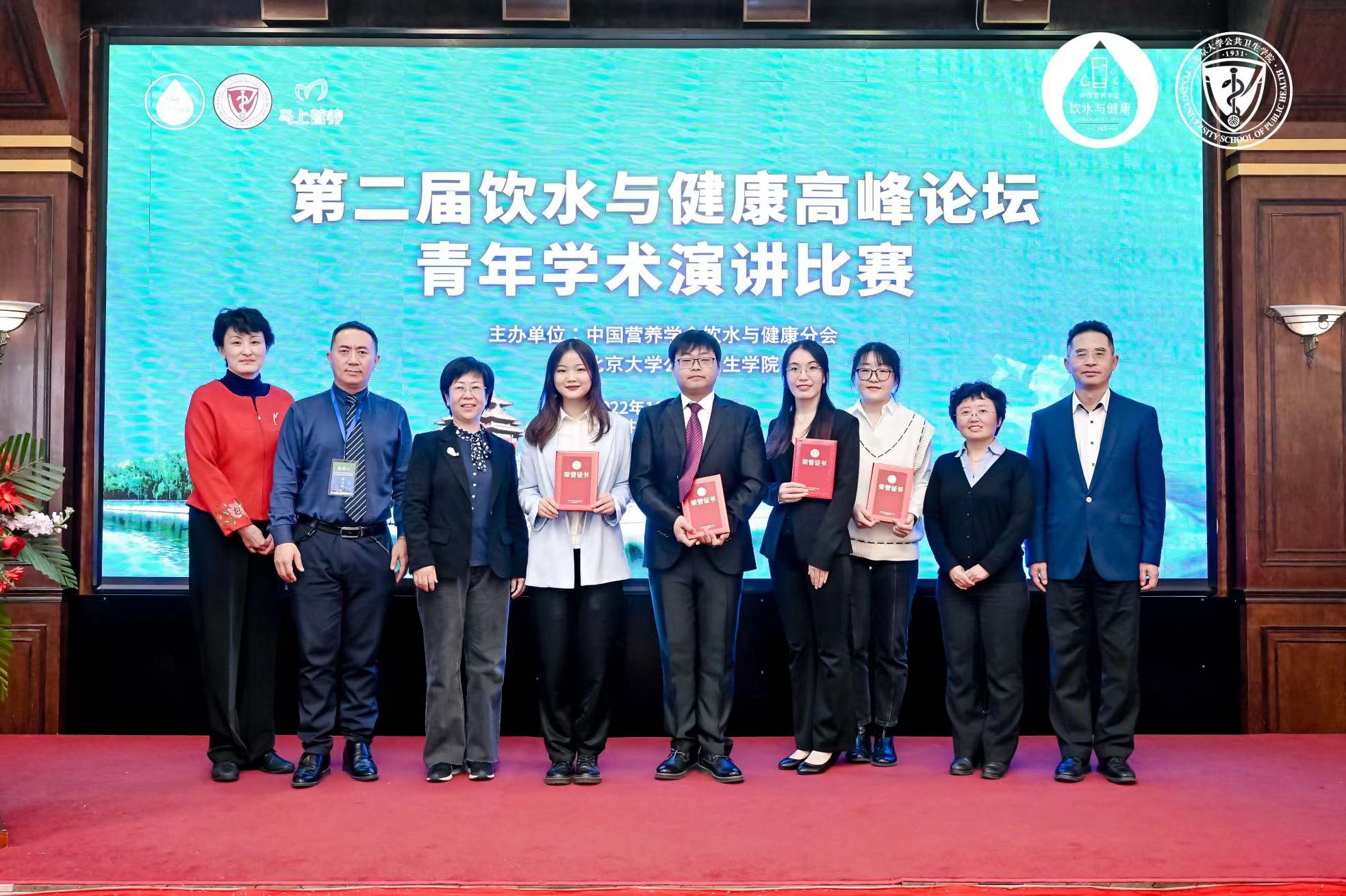 为推进饮水健康研究领域可持续性发展,储备饮水与健康科研力量,培育青年科学家,本次论坛首次设立青年学术演讲比赛,本环节由张娜副研究员主持,来自国内各大专业院校的5名青年学者同台交流。最终,首都医科大学的李梦龙博士生介绍了脱水状态及睡眠时间过长与儿童早期肾损害的关联性研究结果,荣获首届“饮水与健康”青年学术演讲比赛一等奖。我院王行同学以题为《五城市老年人饮水行为调查》的学术演讲,获比赛二等奖。