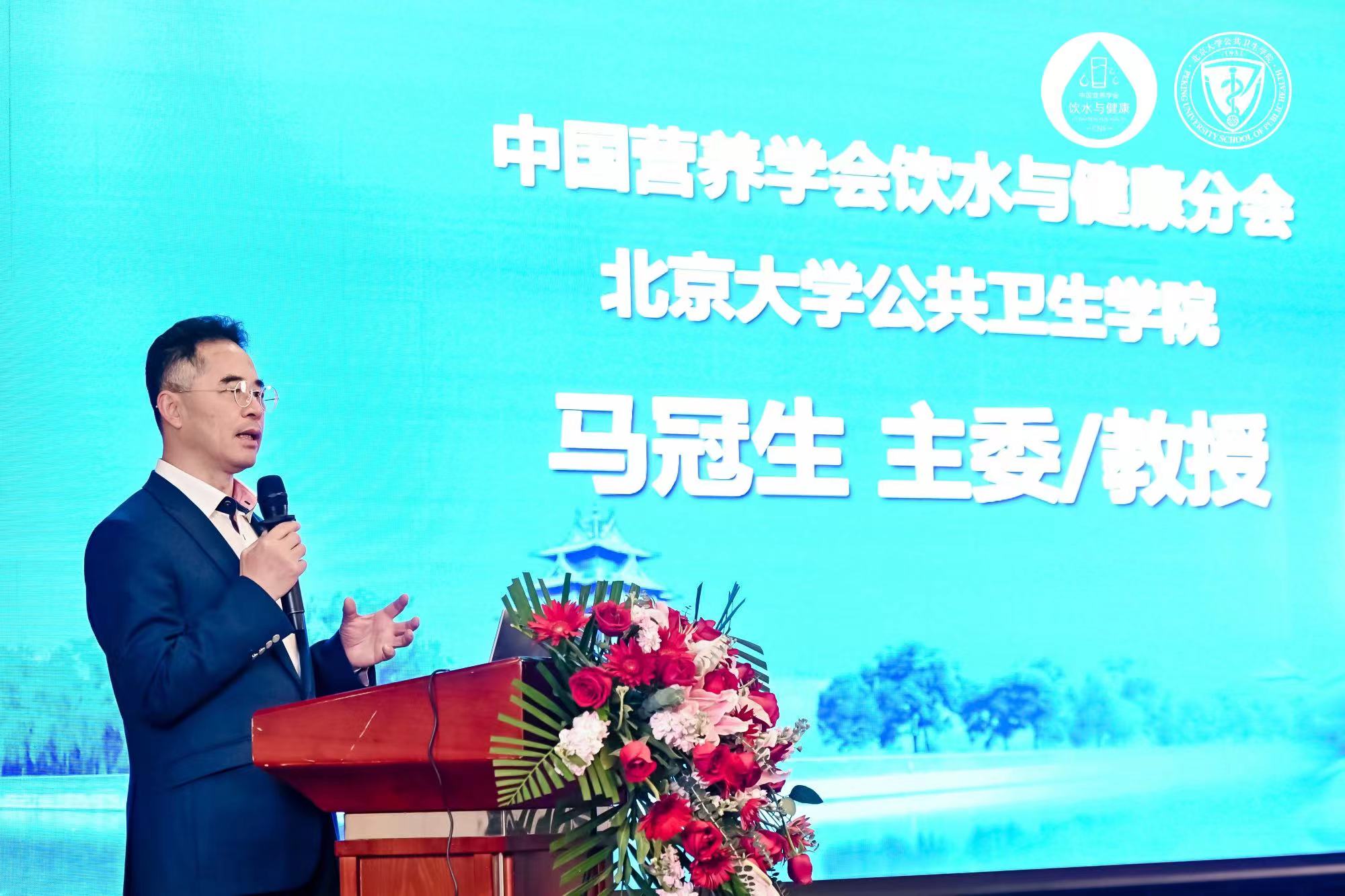 饮水与健康分会主任委员、我院营养与食品卫生学系主任马冠生教授为论坛致辞,表示此次会议旨在促进不同领域的科研工作者对水与健康领域进行广泛学术交流和经验分享,向公共卫生工作者及研究者分享饮水、水合状态与健康相关调查研究的理论知识和技术方法,进一步加强医院、科研院所、疾控、高校等单位与企业的交流合作和产学研融合,推动水与健康科研领域快速发展,形成饮水与健康相关的学科融通、科研合作、人才培养和社会服务的一体化。