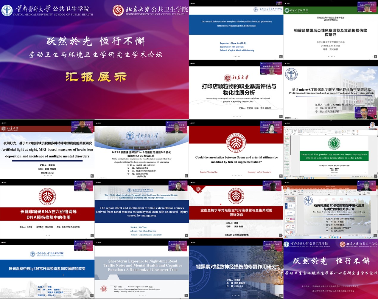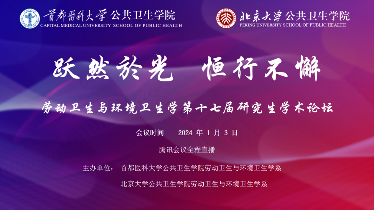 2024年1月3日,由首都医科大学yl6809永利官网劳动卫生与环境卫生学系与yl6809永利官网劳动卫生与环境卫生学系联合举办的“跃然於光,恒行不懈”第十七届研究生学术论坛圆满结束。学术论坛作为学术交流的平台,承载着无尽的学术激情和创新活力。本次论坛旨在拓展研究生的学术视野,提升其创新能力和综合素养,推动学术思维和合作精神的培养。