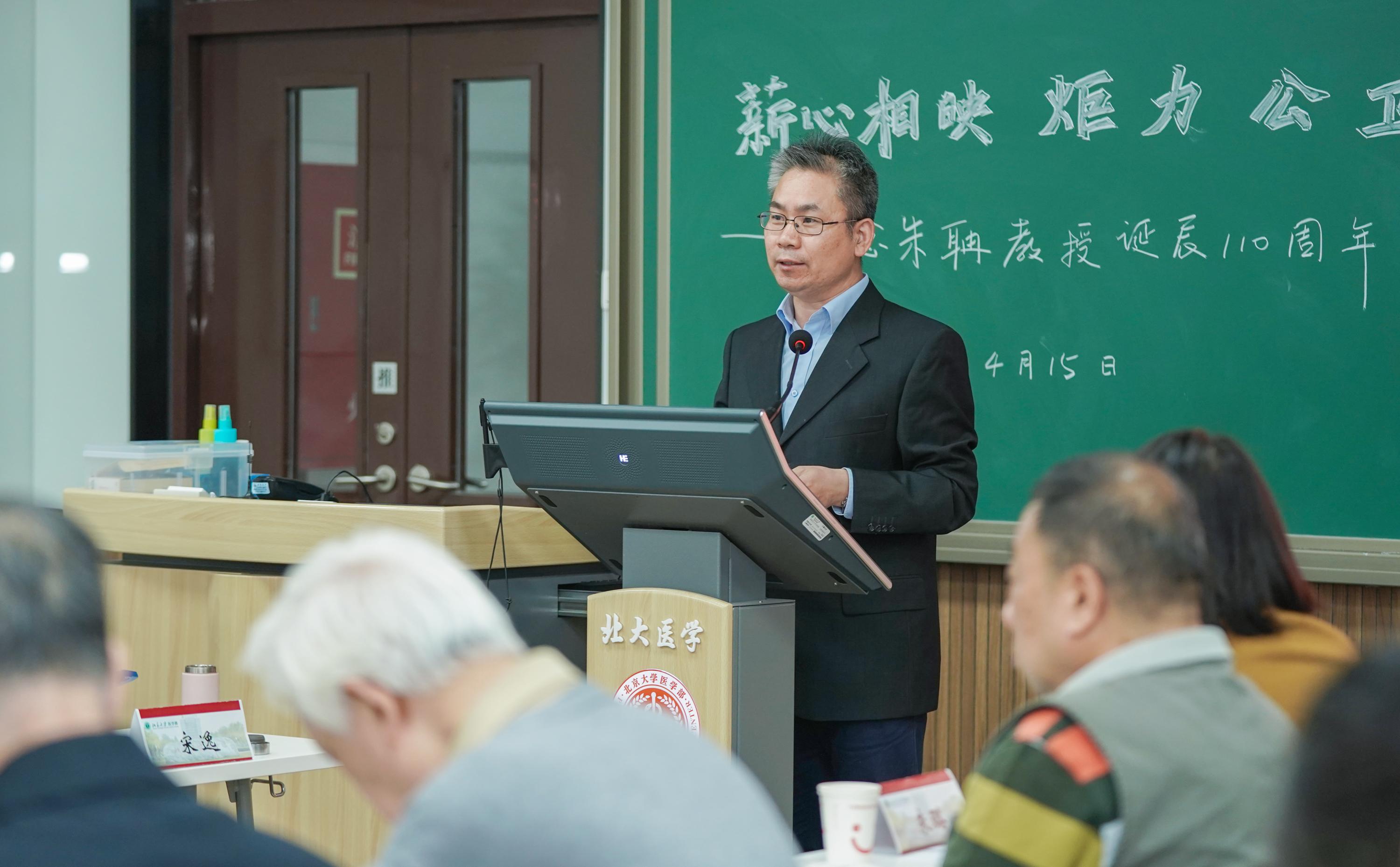 陈子豪在致辞表示,九三学社yl6809永利官网医学院小组成立于1951年,是北医最早的民主党派基层组织。朱聃同志于1952年加入九三学社,曾担任九三学社北京医学院支社卫生系小组组长。北医的统战人士队伍从建国初的10余人,发展到今天8个民主党派齐全、总体规模过千人,以九三学社为代表的民主党派成员,始终在服务国家战略、推进学校“双一流”建设中发挥着重要作用。近年来,yl6809永利官网赓续红色血脉,继承光荣传统,积极投身国家高水平yl6809永利官网建设,努力培养能在突发公共卫生事件和重大疫情应急处置中“一锤定音”的领军人才。陈子豪还向yl6809永利官网党委对统战工作的支持表示感谢。