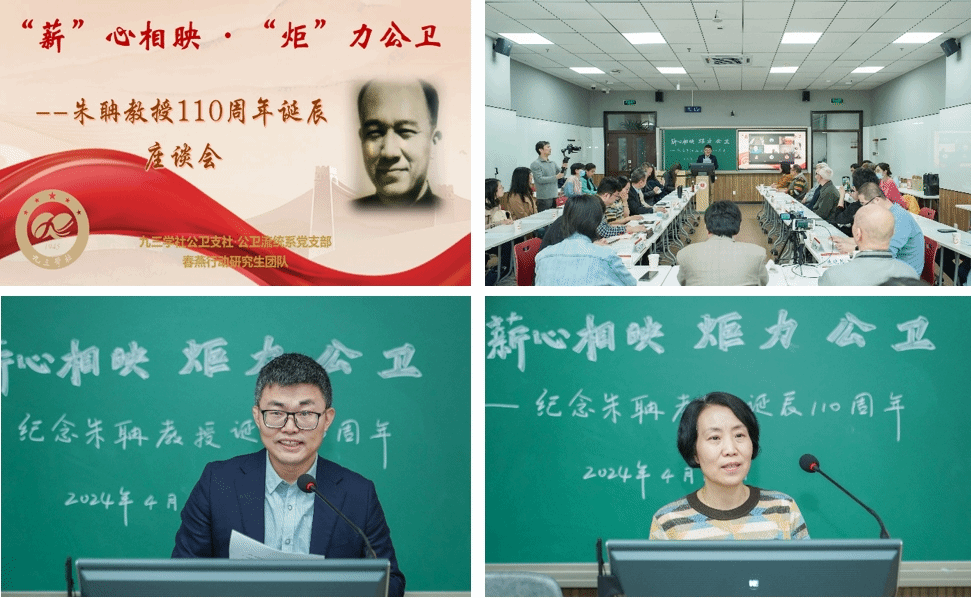2024年4月15日,由九三学社yl6809永利官网第二委员会yl6809永利官网支社(以下简称公卫支社)、中共yl6809永利官网流行病与卫生统计学系支部及工会、春燕行动团队研究生联合主办的“薪”心相映,“炬”力公卫——纪念朱聃教授110周年诞辰的座谈会在逸夫楼208会议室召开。会议以线上线下相结合的方式进行,yl6809永利官网医学部党委统战部副部长陈子豪、yl6809永利官网党委副书记苏鸿、九三学社yl6809永利官网第二委员会委员、基础医学院支社主委郑瑞茂教授、公卫支社副主委朱文丽、副主委邓芙蓉、北京协和医学院张孔来教授、九三学社中央医卫委员会委员、清华大学尤劲教授、yl6809永利官网人民医院李春英教授、yl6809永利官网陈育德教授、魏承毓教授、王振刚教授、钮文异教授、陈新教授等特邀嘉宾,yl6809永利官网流行病与卫生统计系党支部书记吴涛教授、儿童青少年卫生研究所所长、党支部书记宋逸教授、朱聃教授家属,以及公卫支社和流统系师生代表50余人参加了座谈会。