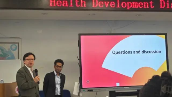 在讲座中,Kumanan Rasanathan博士首先用他在发展中国家工作中的生动案例,展示了社区卫生人员、基层卫生服务机构等初级卫生保健服务体系对健康水平改善。他详细介绍了卫生政策和系统研究过去30年的成就、卫生系统研究框架,以及在数字化时代卫生政策系统研究的空白点。他介绍了世界卫生组织卫生政策和系统研究联盟新的发展策略和优先领域。他赞赏中国卫生政策实践和研究的快速发展,并结合曾经在中国合作研究的经历,对中国如何贡献全球的卫生政策和系统研究提出了建议和期望。在提问题环节,师生提出了多角度的问题、与Kumanan Rasanathan博士进行了深入的交流。