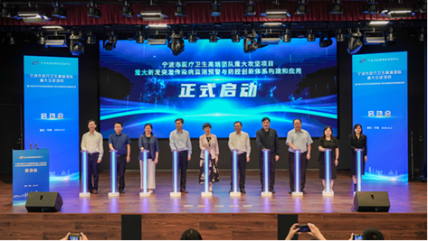在宁波市疾病预防控制中心,宁波市卫生健康委员会主任、党委书记俞曹平、市科协党组书记方巍、市卫生健康委党委委员、市疾控中心主任童峰等当地领导隆重接待了代表团一行。乔杰院士出席宁波市医疗卫生高端团队重大攻坚项目《重大新发突发传染病监测预警与防控创新体系构建和应用》的启动仪式,并与俞曹平书记共同为该项目揭牌。