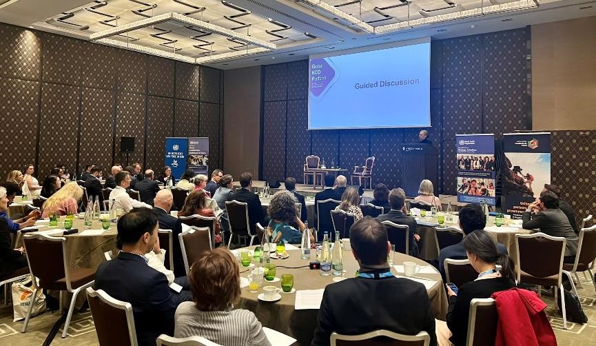 北大师生还出席了世卫组织东南亚区域办事处、世界卫生组织全球非传染性疾病平台、澳大利亚卫生部、肯尼亚政府、苏格兰政府、印度常驻团、卡塔尔政府、德国政府、加纳政府、世界经济论坛等主办的多场边会,就感兴趣的话题进行了分享和交流,并在以“Walk the Talk”为主题的世界卫生组织全球健康推广活动中留下了“龙行天下”的中国印迹。