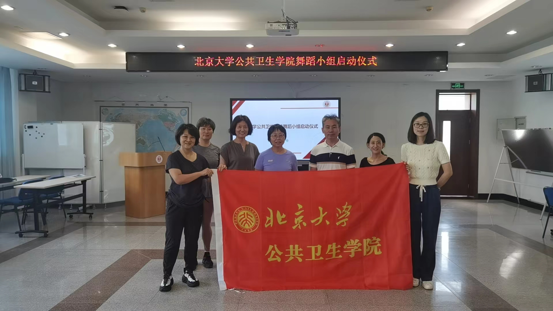 为给教职工、工会会员搭建丰富的文化体育活动平台,营造奋发向上的良好氛围,满足教职工的多元健康需求,经过前期调研并经学院工会委员会研究,决定恢复舞蹈小组的活动并部署开展成员招募、负责人遴选及活动机制的建设等工作。经过一段时间的筹备,9月19日中午,舞蹈小组恢复活动启动仪式暨第一次训练活动在学院卫三教举行。舞蹈小组邀请营养与食品卫生学系樊蕊老师担任组长,负责日常训练活动召集、排练指导、演出安排等工作。学院党委副书记、工会主席苏鸿老师到场祝贺并和老师们合影,表示学院工会将为舞蹈小组的活动开展提供支持,全力做好服务保障工作。