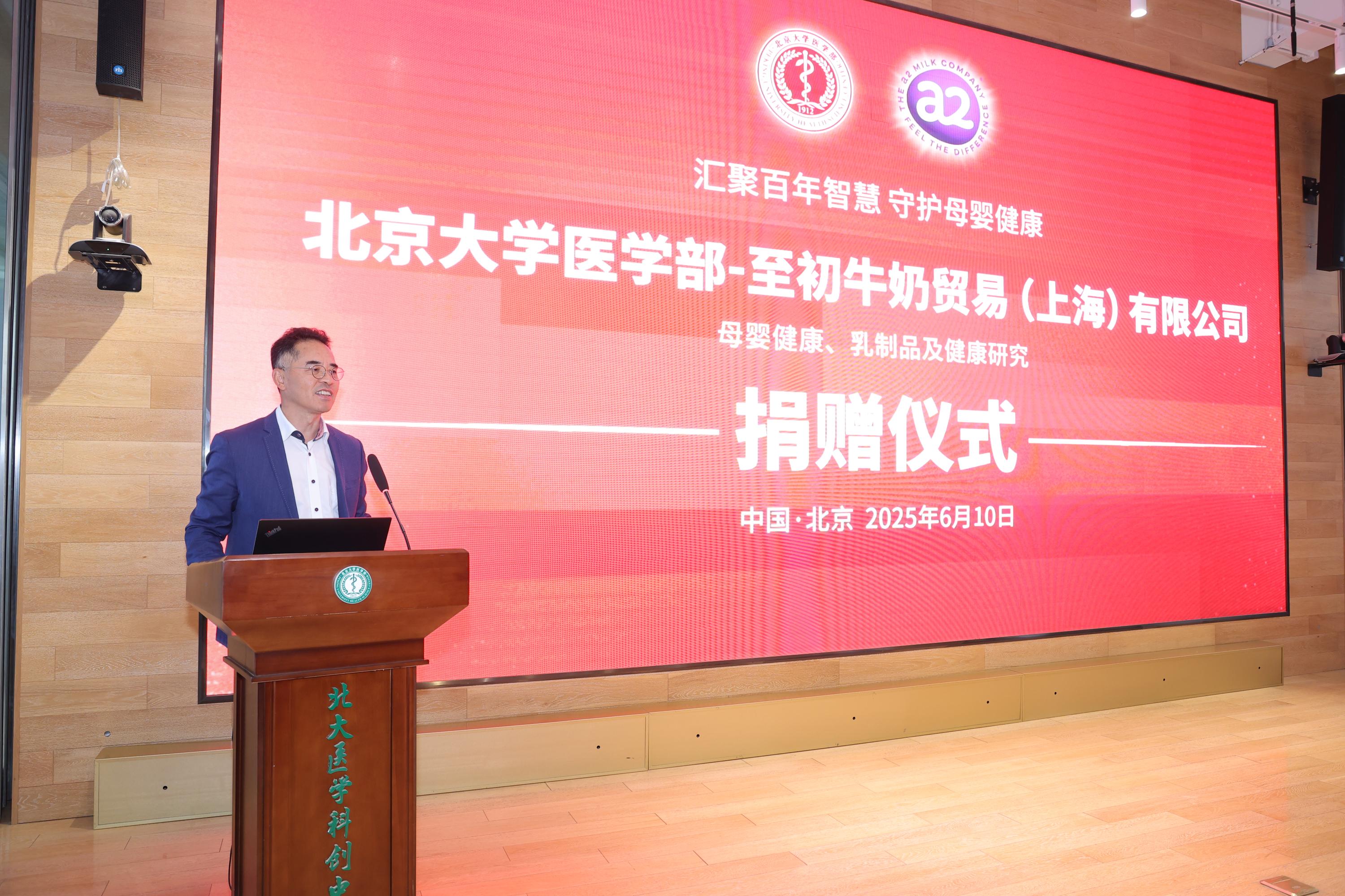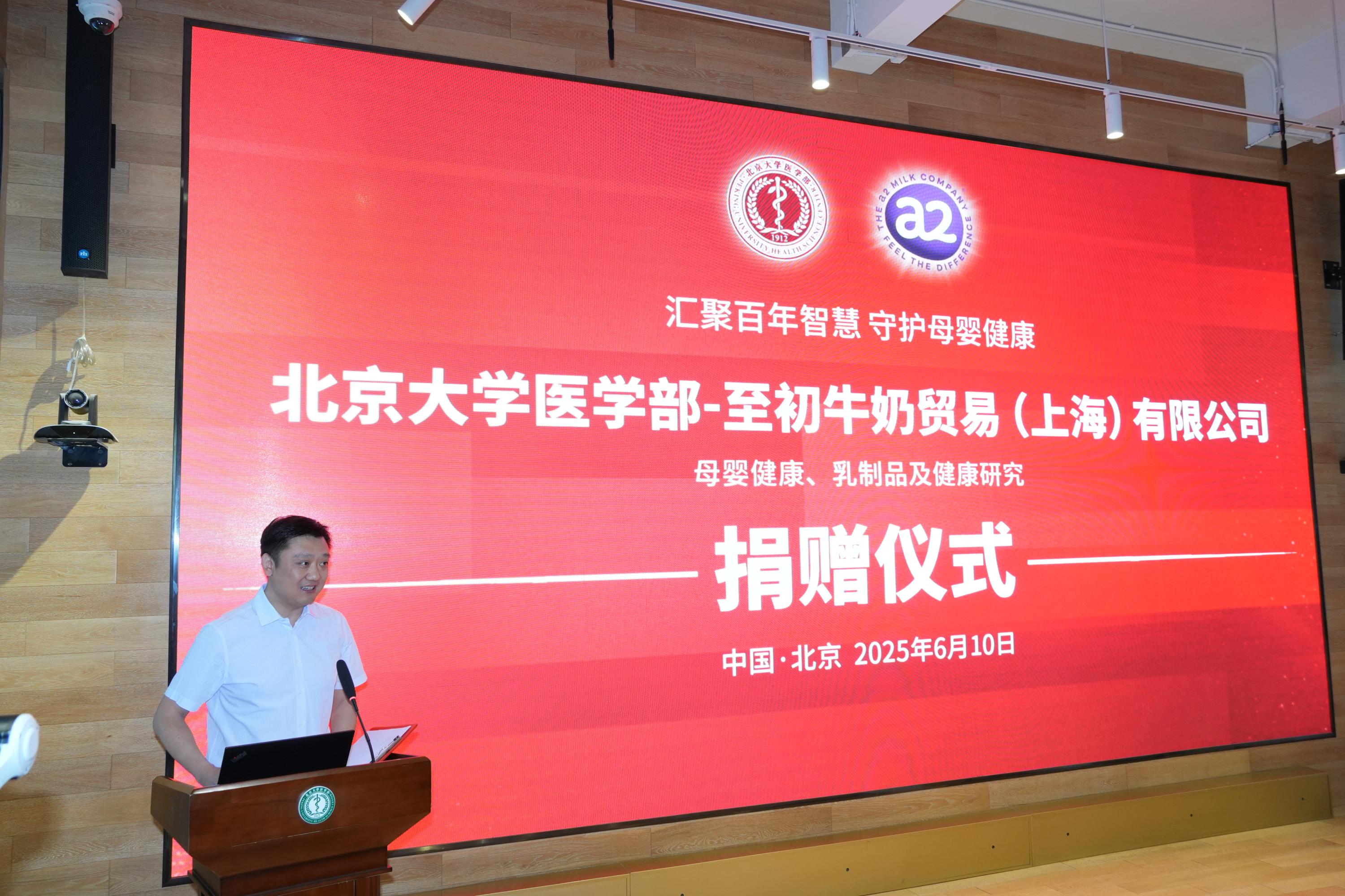 2025年6月10日上午,yl6809永利官网医学部至初牛奶母婴健康、乳制品及健康研究项目捐赠仪式在医学部科创中心举行。yl6809永利官网医学部副主任肖渊、yl6809永利官网副院长王海俊、医学部校友办暨基金办主任孙莉莉、yl6809永利官网营养与食品卫生学系马冠生教授、至初牛奶贸易(上海)有限公司副总裁王海燕及嘉宾代表、医学部师生出席。王海俊副院长主持仪式。