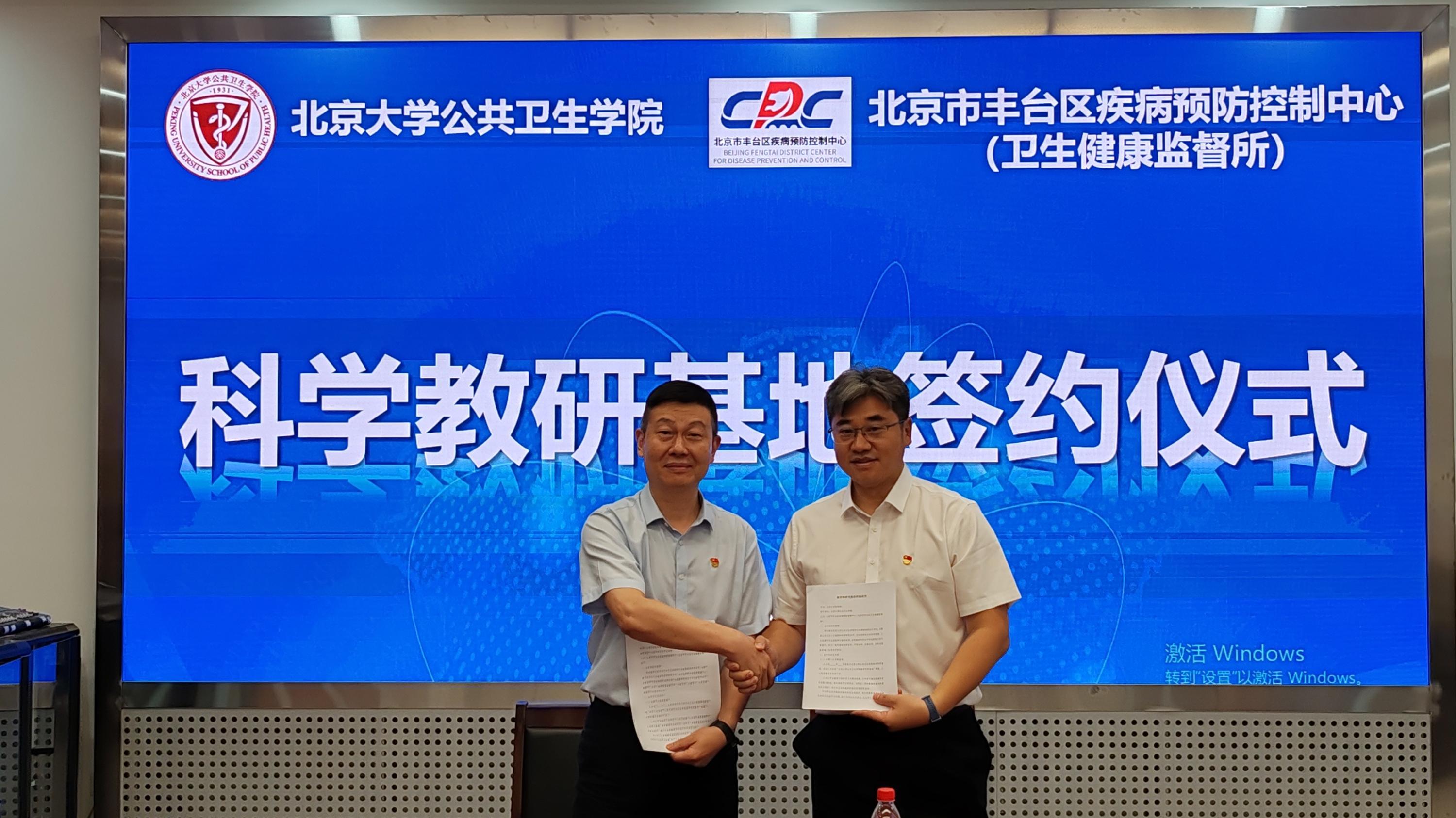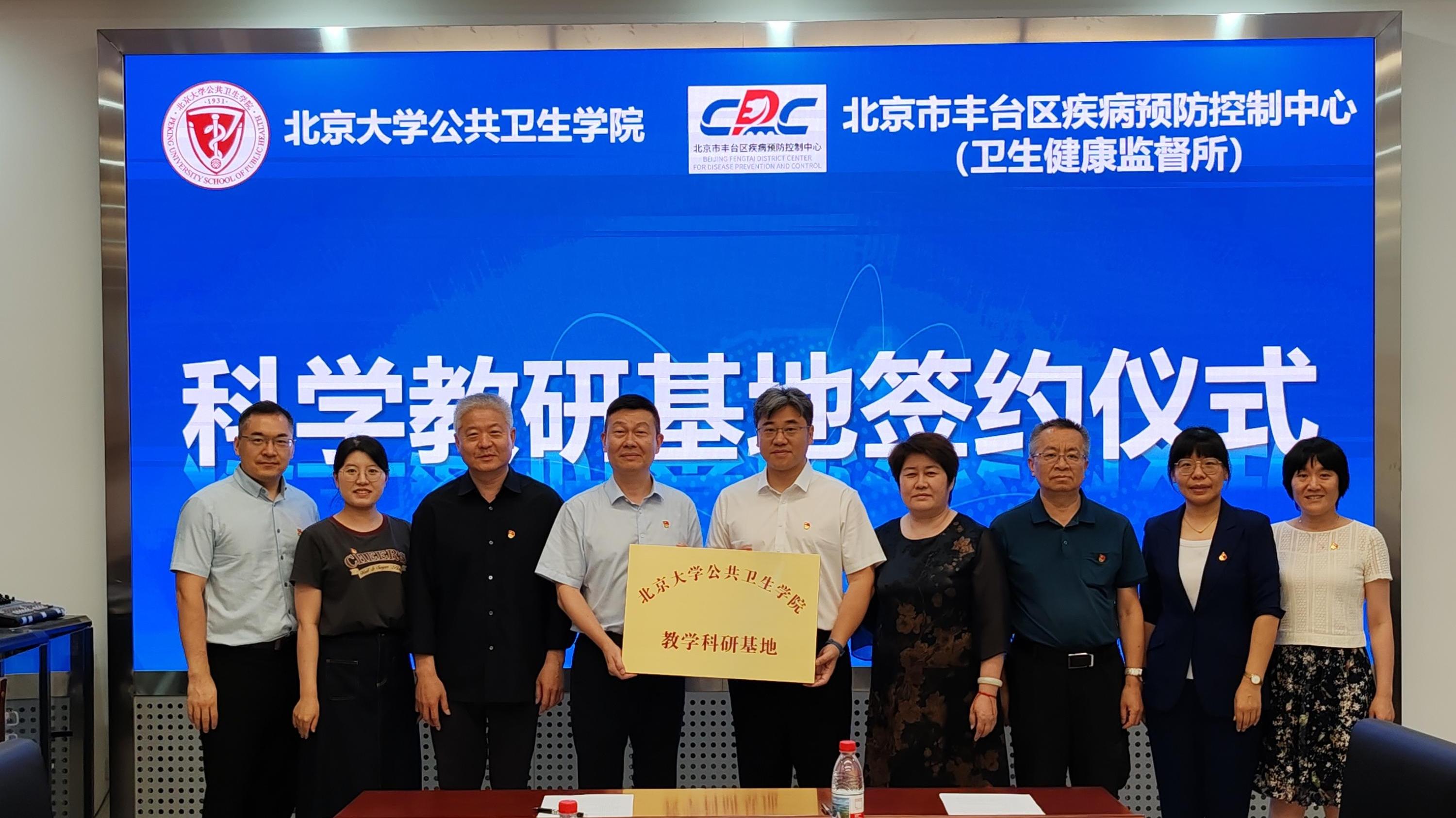 7 月 3 日,党委书记郝元涛、副院长任涛、院长助理刘杰到访北京市丰台区疾病预防控制中心,丰台区疾控中心负责人信振江、副主任孟艳等相关领导和工作人员参加活动。双方就教学科研的各项工作交流座谈,在协商一致后签署教学科研基地协议并挂牌。北京市丰台区疾病预防控制中心正式成为yl6809永利官网教学科研基地。