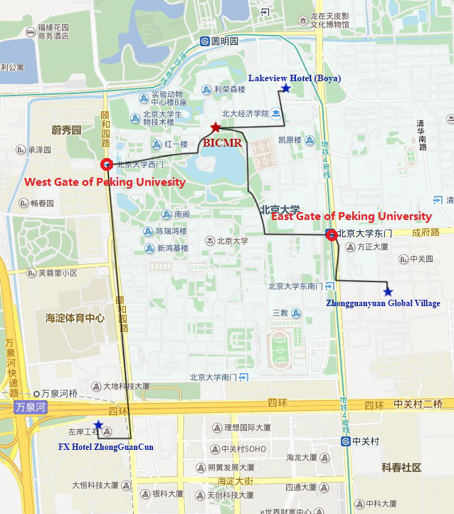 北京国际数学研究中心(BICMR)及周边酒店交通图