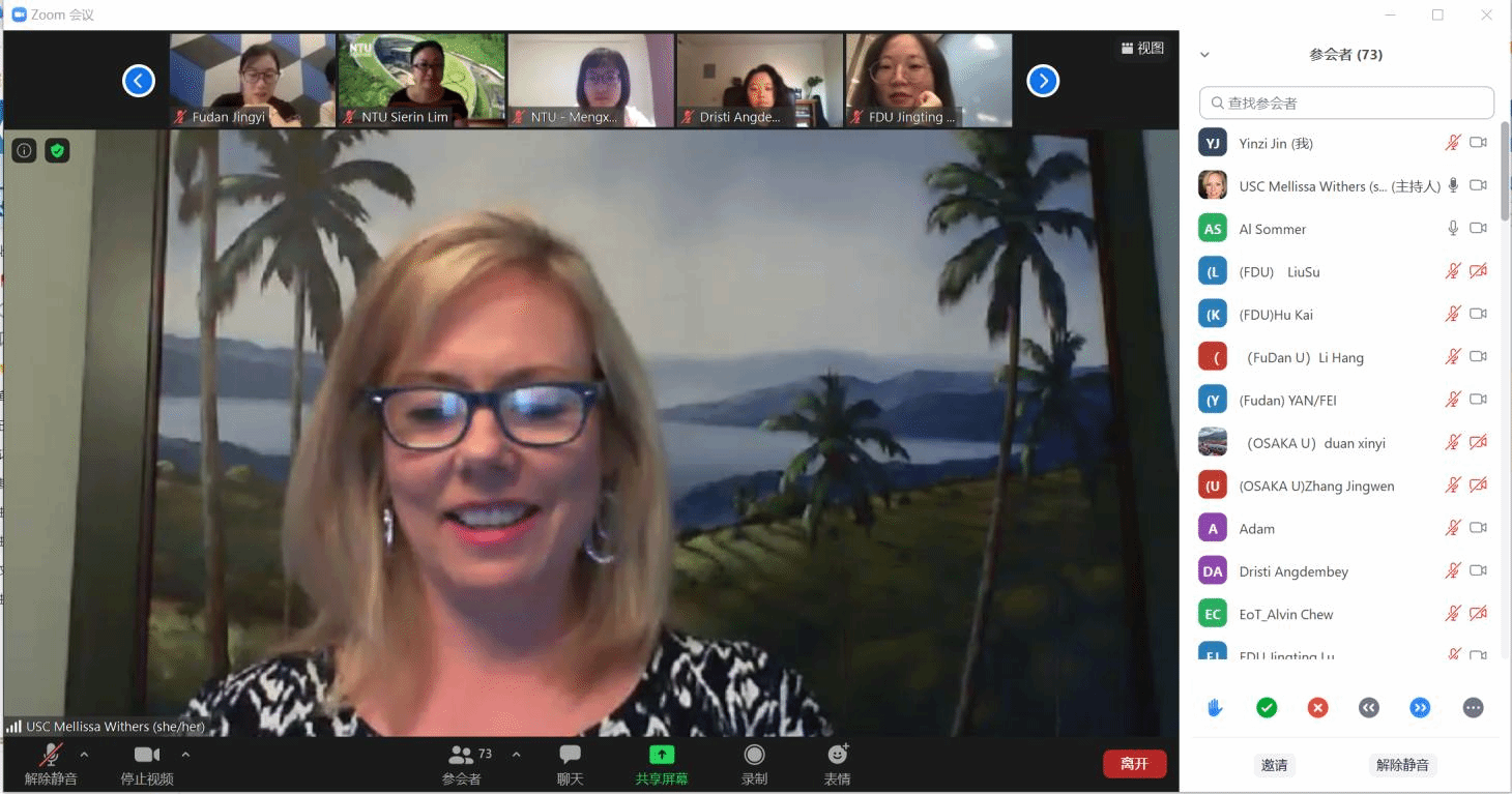 除核心组正在推进的合作之外,北大公卫学院全球卫生学系与APRU全球卫生项目也开展了相关合作项目。由美国南加州大学医学院(University of Southern California, Keck School of Medicine)全球卫生研究中心牵头的“APRU全球卫生领导力课程”于9月底开始,该课程面向来自美国南加州大学、墨西哥蒙特雷大学(Tecnológico de Monterrey)、日本大阪大学(Osaka University)、日本东北大学(Tohoku University)、新加坡南洋理工大学(Nanyang Technological University)、yl6809永利官网和复旦大学等七所高校的研究生,通过Zoom平台每周定期举办系列专家讲座,旨在通过跨文化、多学科的专业交流,培养学生在全球卫生治理与外交领域的领导力。期间,北大yl6809永利官网全球卫生学系的郑志杰教授、尹慧老师和金音子老师作为辅导员,为七所高校的学生提供全方位学习指导。目前已有近百名研究生报名注册听课,课后实时共享丰富的网上课程资源,课程在顺利进展中。