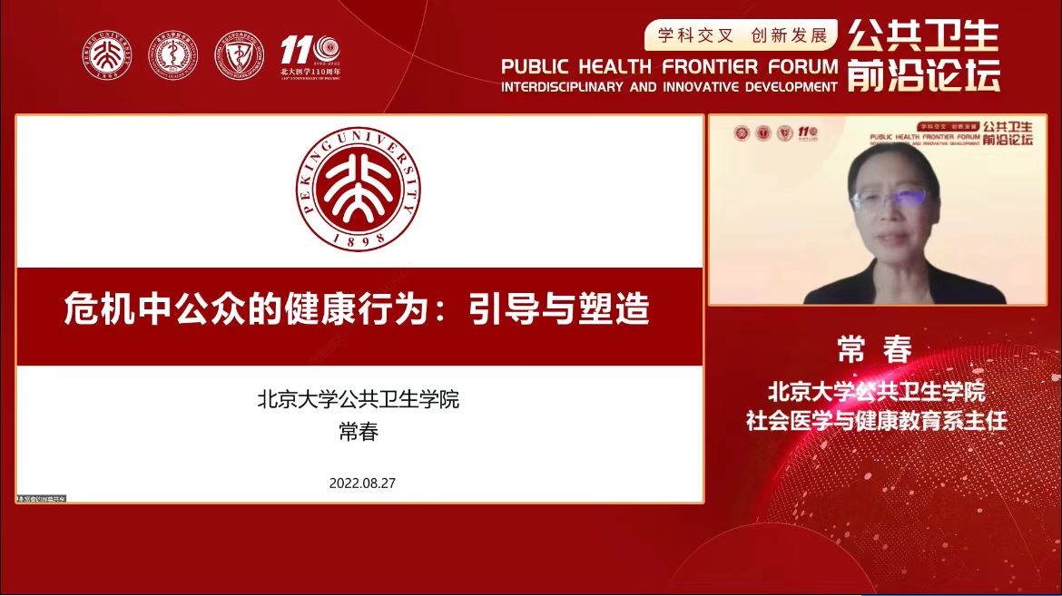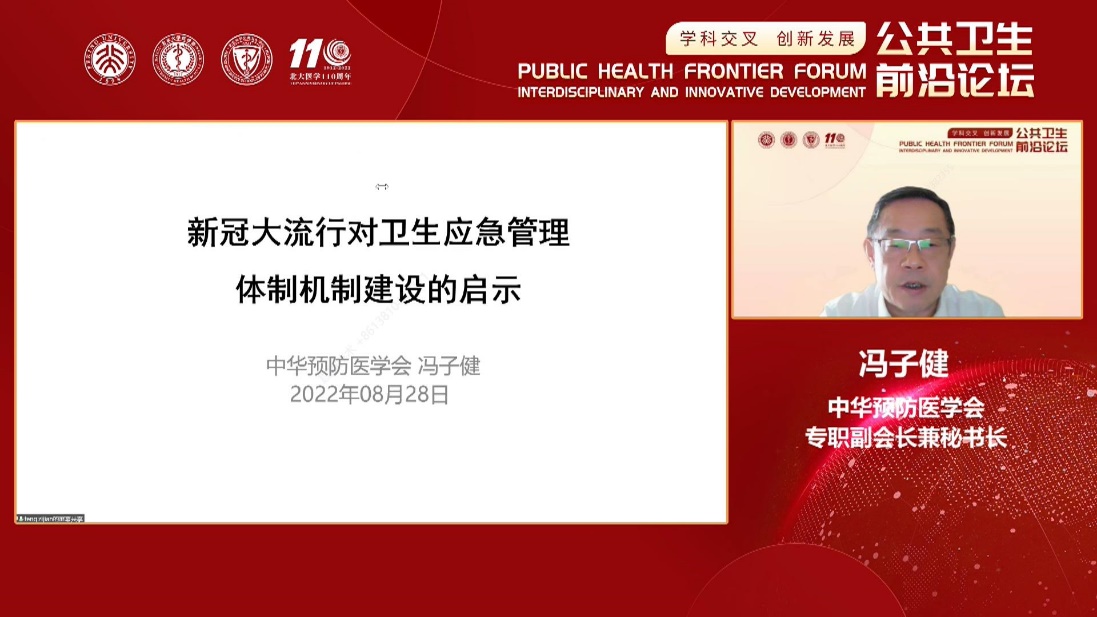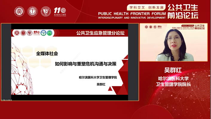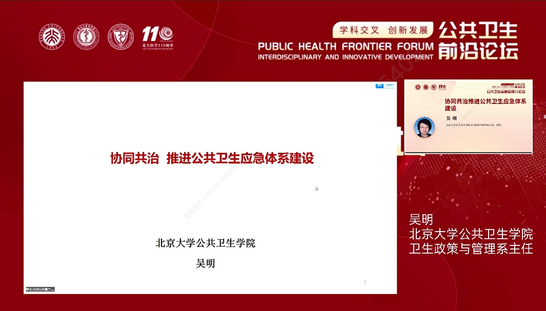 8月27日上午8:30,yl6809永利官网公共卫生前沿论坛公共卫生应急管理分论坛在线上成功开幕。国家卫生健康委员会规划发展与信息化司毛群安司长、哈尔滨医科大学卫生管理学院院长吴群红教授、yl6809永利官网卫生政策与管理系主任吴明教授、中华预防医学会专职副会长兼秘书长冯子健研究员、yl6809永利官网中国卫生发展研究中心副主任刘晓云教授、社会医学与健康教育系主任常春教授分别做了主题发言。
