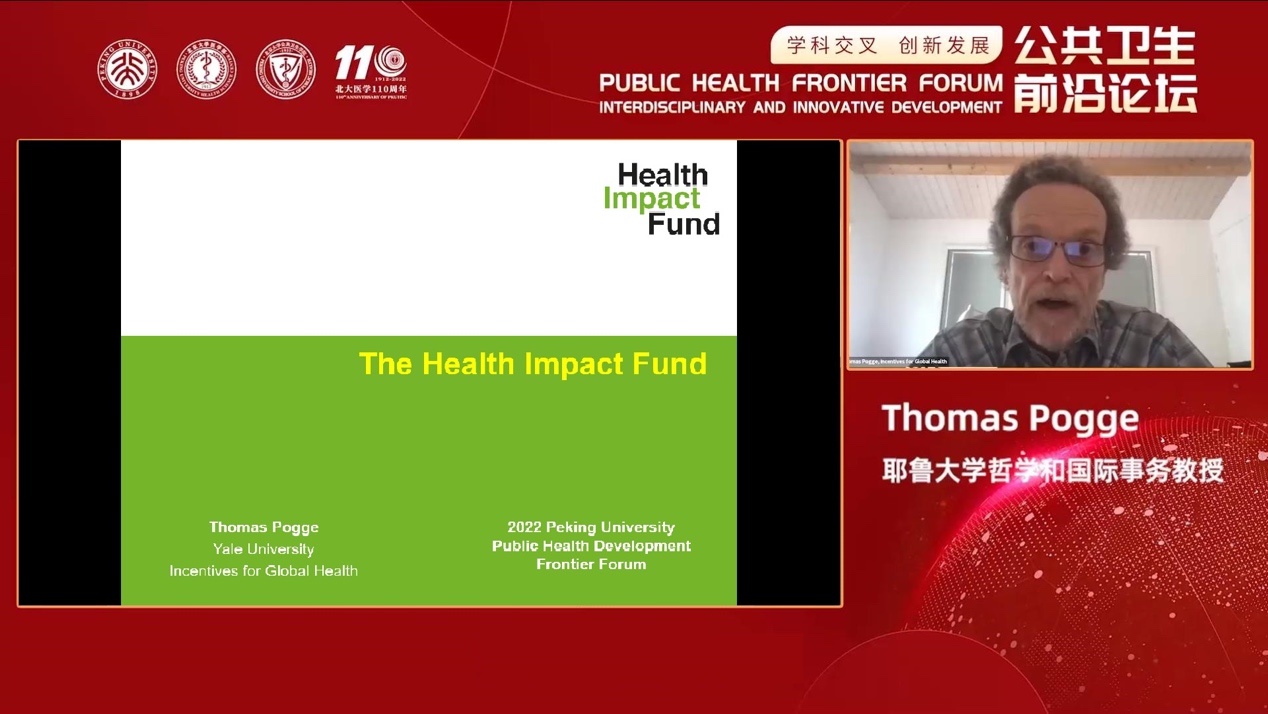 Thomas Pogge教授介绍了他与经济学家Aidan Hollis教授创建的健康影响力基金。他分享了创建了该基金的动机,指出这是一个按绩效或药物产生的健康影响进行付费或奖励的机制,为全球药物开发和分销提供基于市场的解决方案,促进针对低收入群体中被忽视的疾病的药物研发和公平可及。他具体阐述了健康影响力基金在新冠疫情中的作用,并提出了在下一阶段的计划。他的目标是将其将其推广成为一个永久性的国际制度,并正在进行努力。