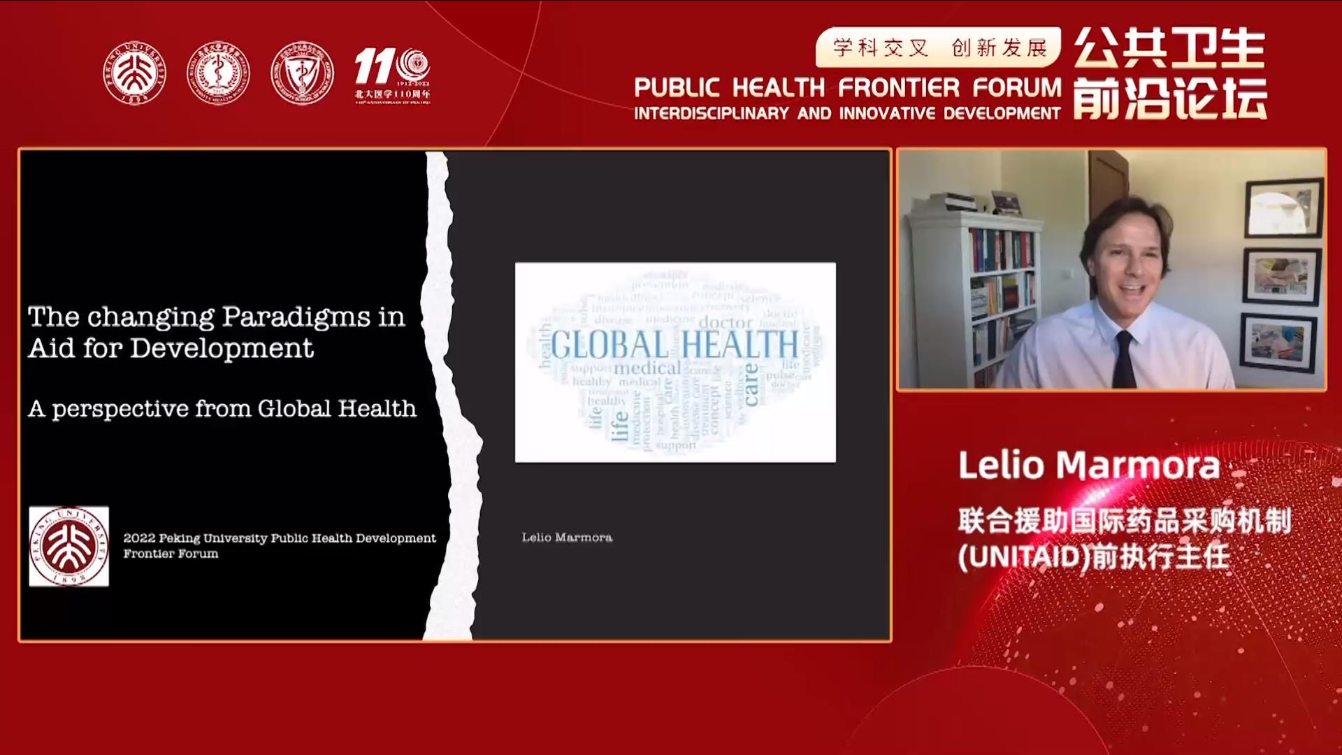 为迎接北大医学办学110周年,yl6809永利官网、yl6809永利官网医学部科研处举办的“学科交叉,创新发展”公共卫生前沿论坛于2022年8月26日顺利开幕。26日下午,由yl6809永利官网全球卫生学系承办的全球卫生治理与传染病防控分论坛成功举办。分论坛邀请世界卫生助理总干事Mariangela Simao、耶鲁大学哲学和国际事务教授Thomas Pogge、联合援助国际药品采购机制(UNITAID)前执行主任Lelio Marmora、中国疾控中心寄生虫预防控制所所长周晓农、中国医学科学院北京协和医学院群医学及yl6809永利官网执行院长杨维中、yl6809永利官网全球卫生学系副主任黄旸木和yl6809永利官网研究员刘珏作为演讲嘉宾分享全球卫生治理与传染病防控领域的前沿进展。分论坛由yl6809永利官网全球卫生学系主任许铭研究员致开幕辞并主持。