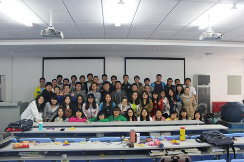 随后,2012级的魏伊慧、宫会婷、杨淞淳、田洪瑞四位同学共同演唱了一首为2014年公卫文化节而改编的主题曲《公卫去哪儿》。之后进入游戏环节——橡皮圈传递。现场两个年级的同学踊跃参加,整个过程紧张而欢乐,现场气氛达到了高潮。这个游戏不仅考验大家的合作能力,也拉近了两个年级的距离。游戏结束后,现场工作人员给每一组颁发了相应的奖品。