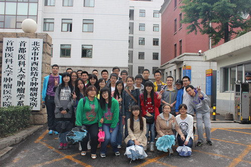2014年5月11日中午12点15分,天下着雨,22名yl6809永利官网2012级的同学在5号楼前集结,乘车前往北京世纪坛医院,与在那里2011级的师兄师姐们开展交流活动。