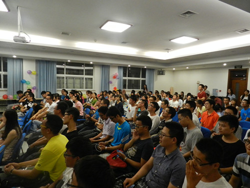 一样的月光,不一样的情怀,全体14级预防本科新生和部分12级、13级优秀师兄师姐齐聚一堂,品尝甜美月饼,欣赏暖情歌舞,室内灯光明亮,四周彩球环绕,其乐融融。