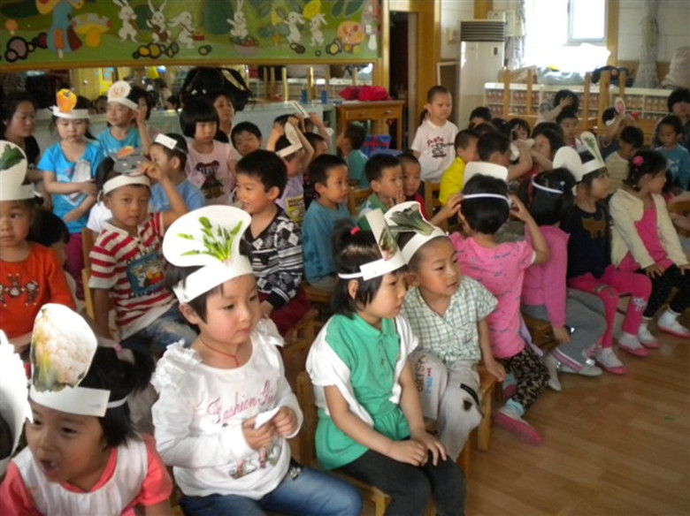 图为北医幼儿园的小朋友们在专心致志地听讲