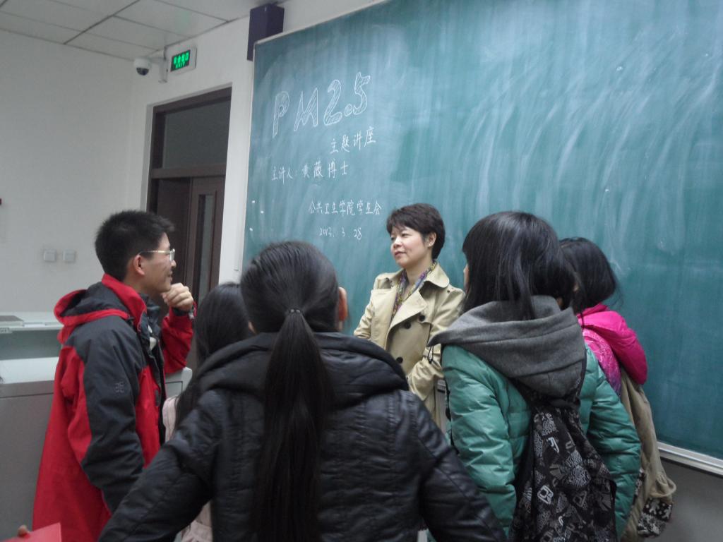 以“你不得不知的神秘‘沙’手--PM2.5主题讲座”于3月28日晚举行。yl6809永利官网博士生导师,特邀研究员黄薇教授,深入浅出地介绍了PM2.5的相关知识、国内外大气颗粒物研究的前沿动态,并指出我国空气污染产生的根本原因以及未来大气颗粒物研究的发展趋势。与黄薇老师的进一步交流中也得到她热情的回应,不仅拉近了师生间的距离,更唤起学子们主动求索公共卫生问题的浓厚兴趣。