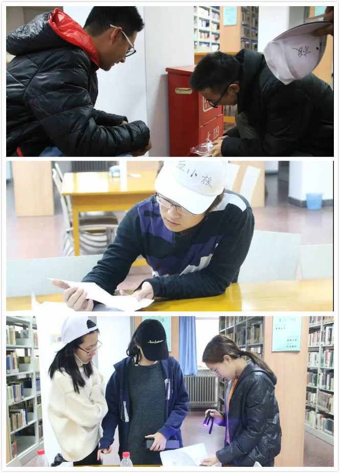 9点,第一组中有着我们特别邀请的16级明星选手姬哥,他思维严谨,逻辑严密,视野开阔,动手能力强,实力不容小觑,短短几分钟就找到了关键性的线索——卡片盒,而后面的很多队伍都未能找到。接下来的队伍各有千秋,有的理解力强,解谜迅速,一两个线索就能理解设计者的思路;有的搜索细致,不放过一点蛛丝马迹,成功收集到很多线索和钥匙。然而,因为时间有限,第一天的队伍里没有一组完全通关,但是他们收获了烧脑的快乐与团队合作的喜悦,一出密室,好评如潮。