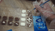 在经过简单的指导后,大家便迫不及待地纷纷动手,发挥各自的奇思妙想,制作形状各异、口味不同的巧克力。